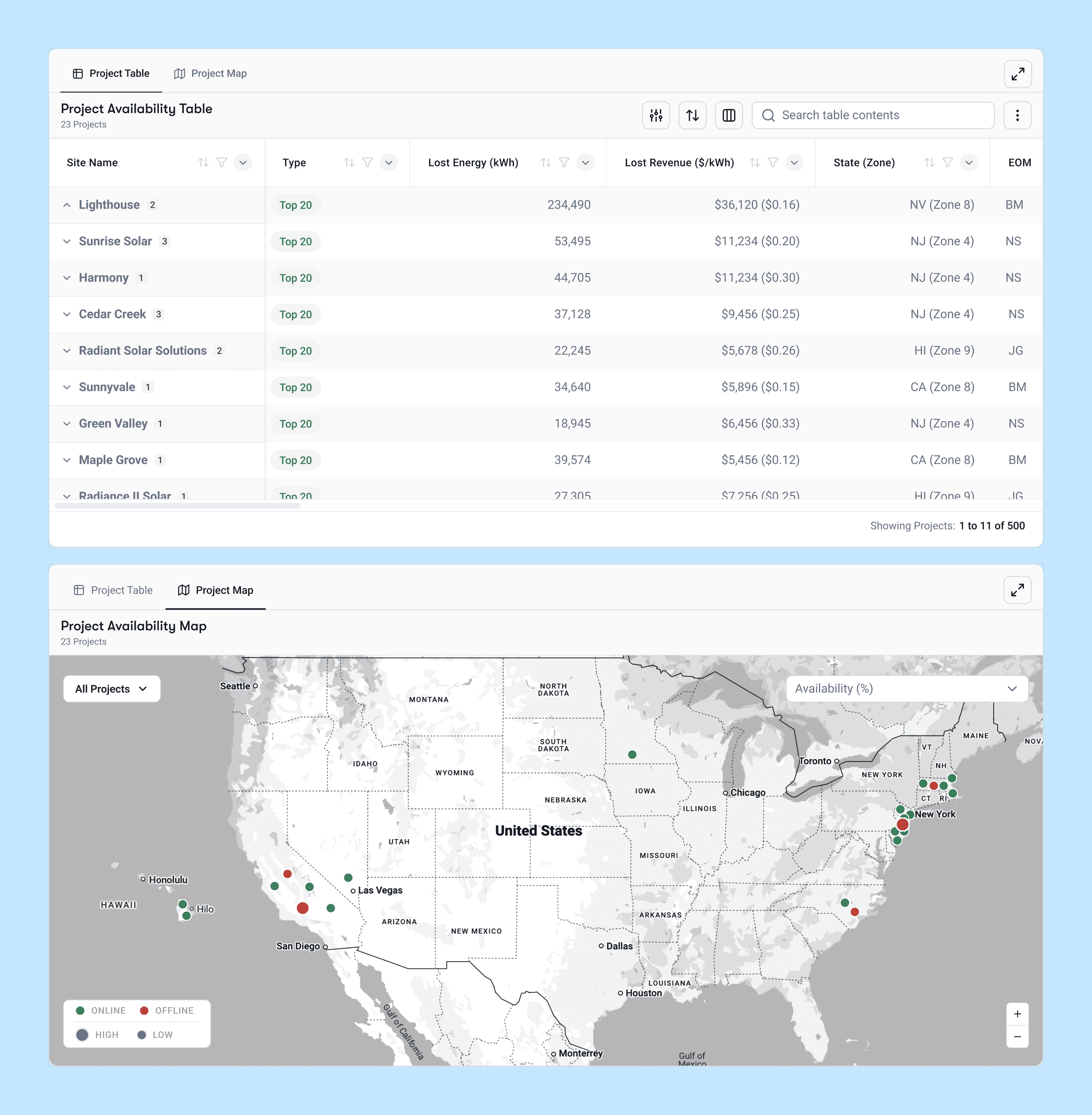 Stakeholders found it valuable to view both the details and the ways they reflected the overall performance (revenue and energy) of the portfolio.