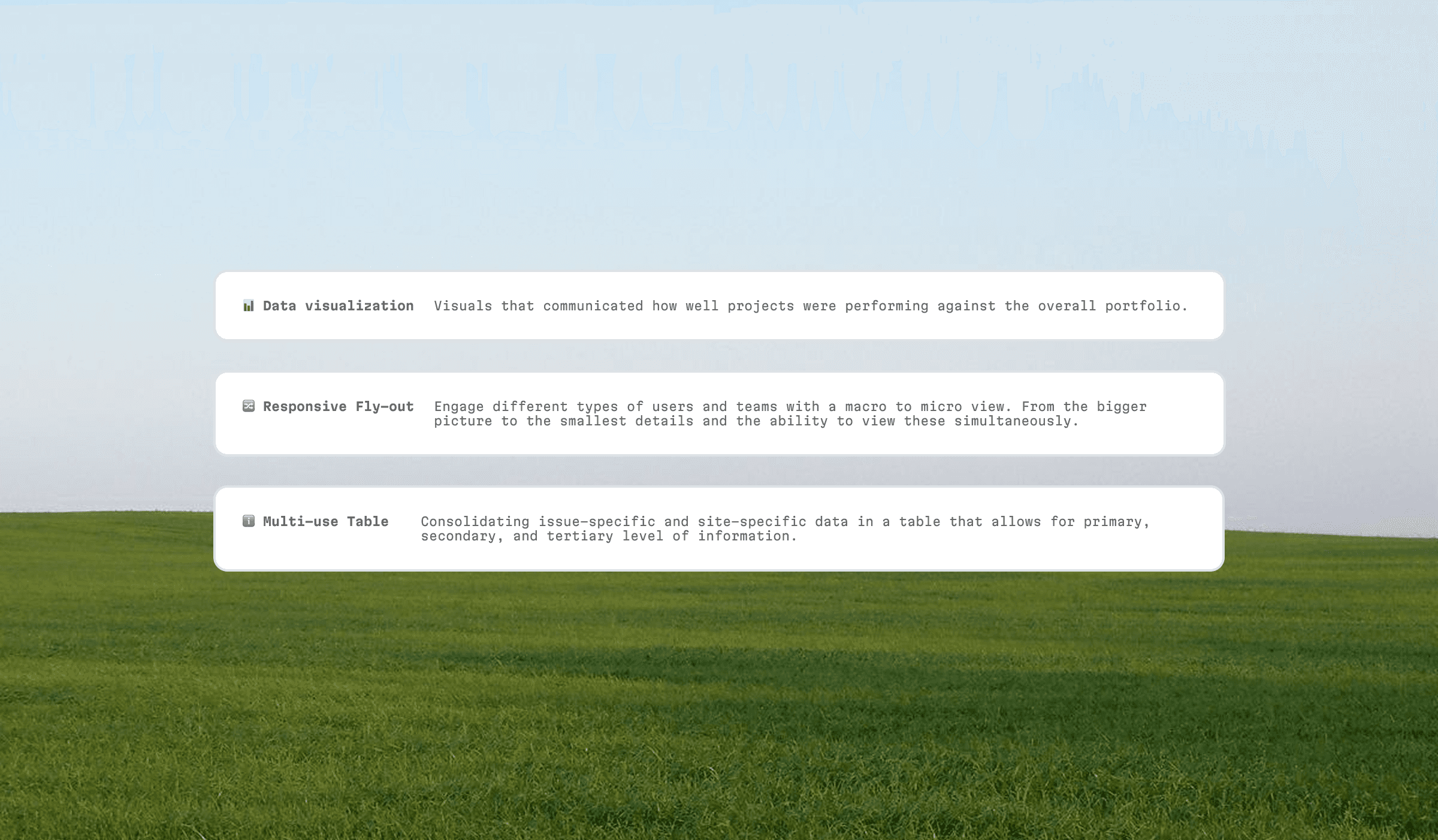 I worked with the senior designer, product manager, and multiple stakeholders to build a dashboard that engaged with multiple layers of crucial portfolio information.